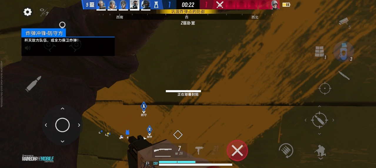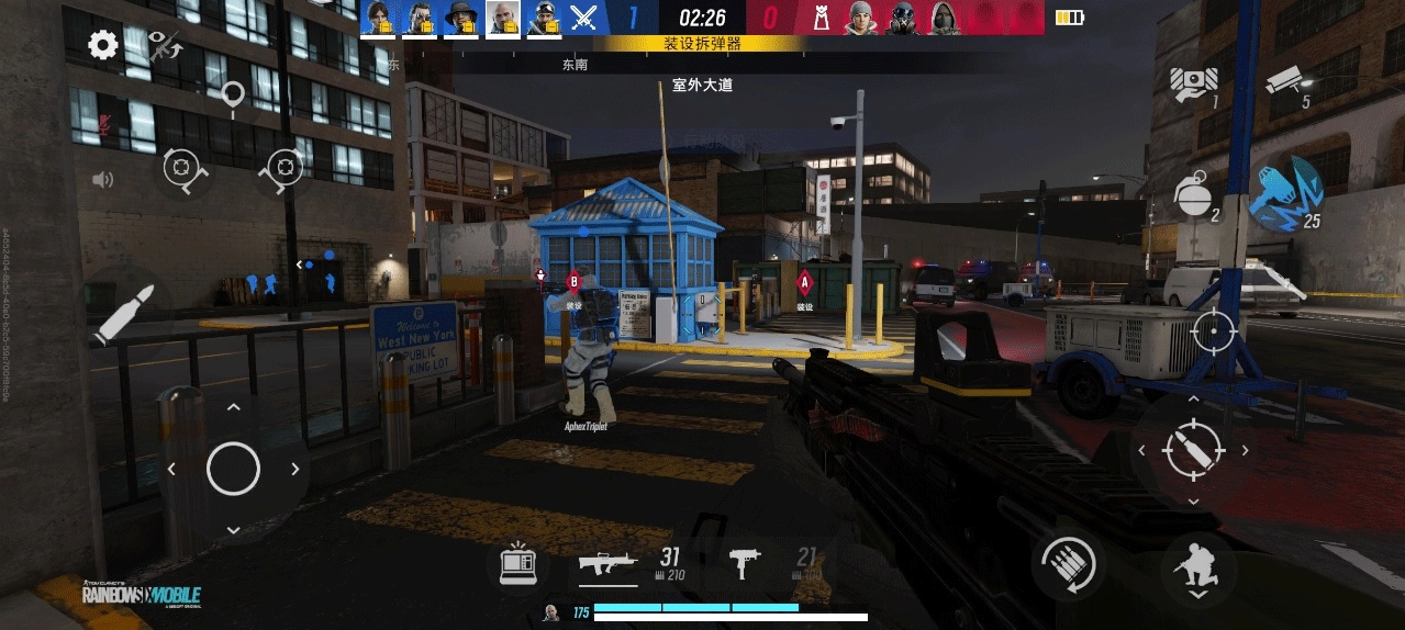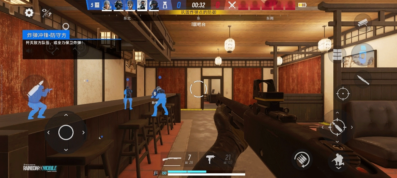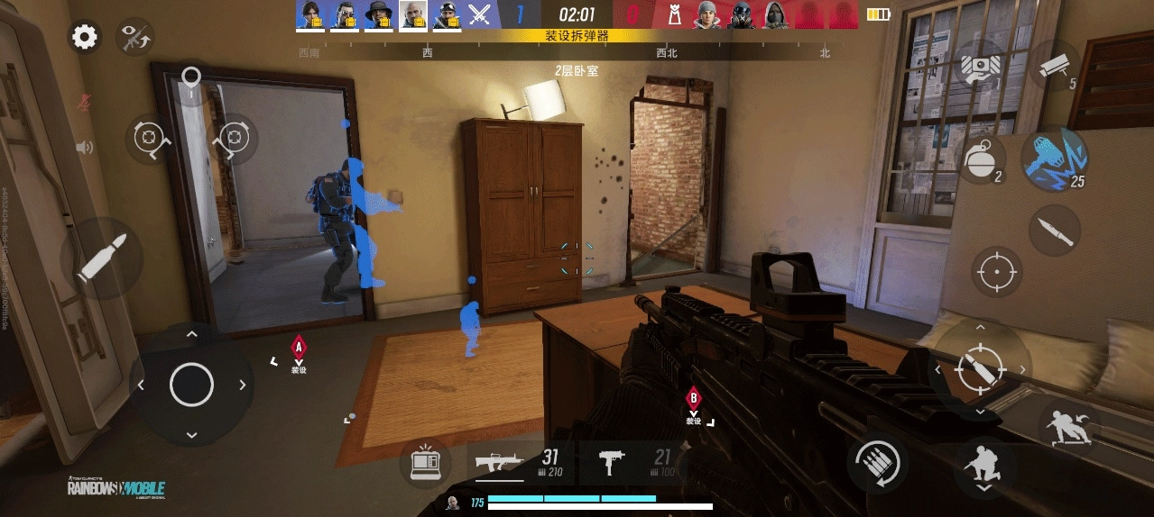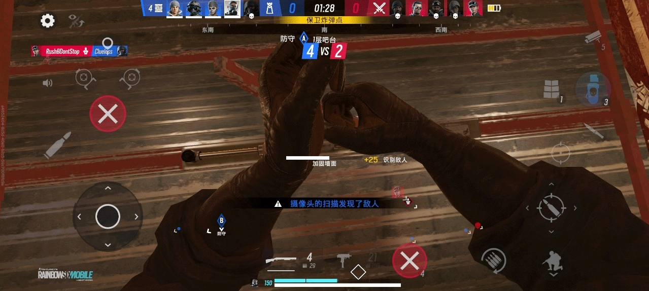 **移动端适配** - 《彩虹六号:移动版》已针对手机平台进行开发和优化,比赛时间更短,游戏回合也更紧凑。您可以在 HUD 中自定义游戏操控,以适应您的游戏风格和移动端的舒适度。