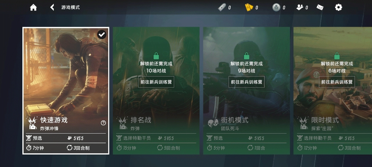 4、接着选择游戏模式,第一次只能玩快速模式,其他模式,如排名站、街机模式、限时模式需要完成对应的对战次数