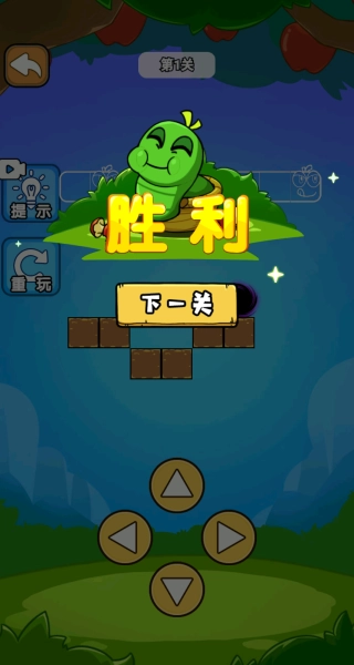 3、关卡胜利后,点击 “下一关” 按钮即可进入后续关卡;若想重新挑战当前关,可点击左侧的 “重玩” 按钮重新开始。