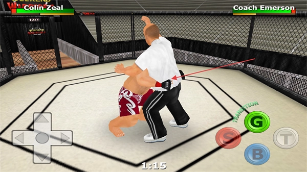 4、持续压制倒地的对手,完成攻击连招,推进摔跤对决进度。