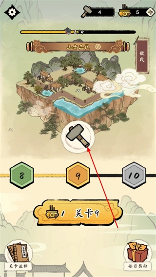 1、在游戏关卡界面,点击锤子图标,进入建造相关操作流程。