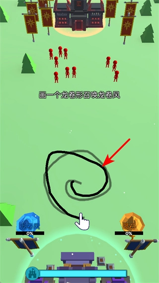 4、按照指引绘制龙卷形状,可召唤龙卷风技能,龙卷风的范围伤害能高效削弱敌方兵力,助力推进战斗进程。