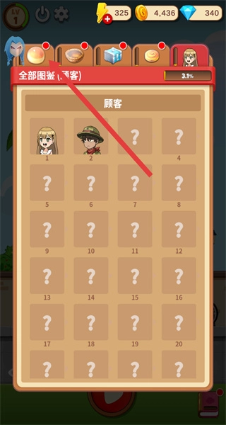 2在图鉴页面,用户可通过点击切换至顾客图鉴或物品图鉴视图,查看已获取及待解锁的相关信息。