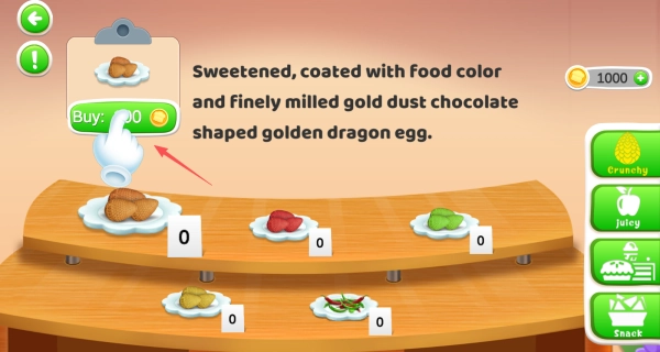 1、在商店界面使用金币购买各类松脆食品,不同食物会触发独特的咀嚼音效。
