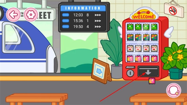 2、在场景中收集道具,如车站自动售卖机的卡片道具。