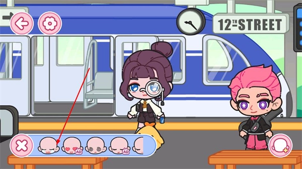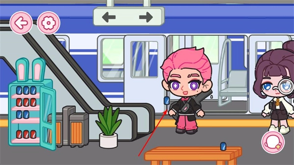 场景设计贴合日常小镇生活,涵盖车站、学校、服装店等真实设施,候车厅的时刻表、自动售卖机等细节高度还原生活场景,加入萌系装饰元素,既真实又治愈。