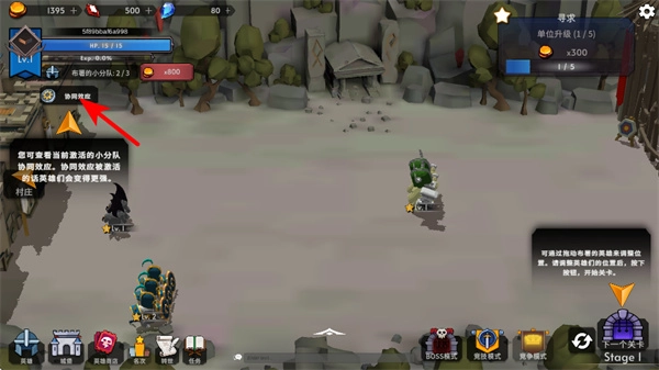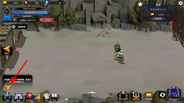 1、找到界面左侧的开始战斗按钮,点击后可触发对战,同时能看到当前帮助弱小村民的任务进度。