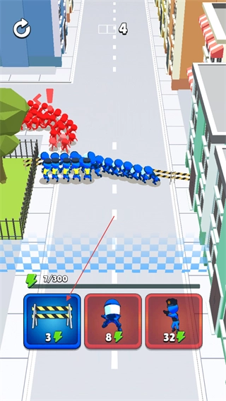 3、操控蓝色队伍与红色敌人战斗,消耗敌方数量,同时补充己方单位。