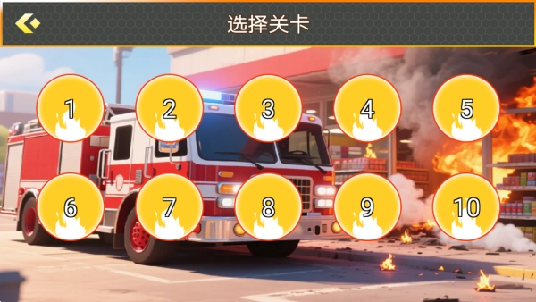 3.拥有多个难度关卡可以选择挑战,每一个关卡都有不同的场景和火灾挑战。