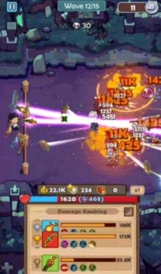 1、在关卡(Wave 5/10)中,面对具有高输出的敌人,需优先观察伤害数值波动,针对高伤害敌人集中火力。