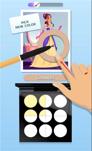 1把传统的填色互动和仿真感受相融合,这款游戏会把画作里的色彩搭配作为基础色调,玩家可以借助这些色调调制出符合自己喜好的眼影组合,打造出独特又好看的美妆产品。