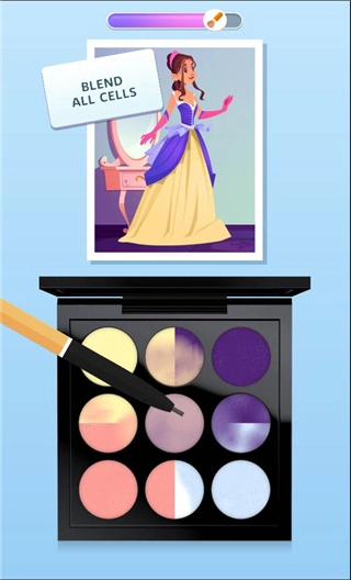 游戏会通过吸管工具在图画里选取几种颜色,把它们放到眼影盘中,等颜色填满后就能启动调和环节。利用两种、三种乃至四种不同色彩的调配,可以得到色彩多样、饱满丰润的眼影盘。玩家能按照自己的喜好,在图画上挑选完全不同或者相近的颜色来定制专属眼影盘,没有任何外在条件的约束,感兴趣的朋友不妨来体验一下!