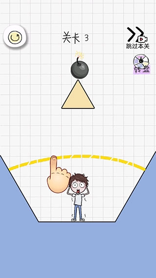 2、从第一关开始挑战吧,这一关的难度不高,只要在人物的头顶画一条毛线就能通关了。