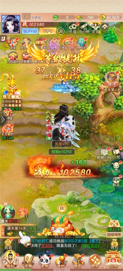 4、放置挂机,轻松升级。