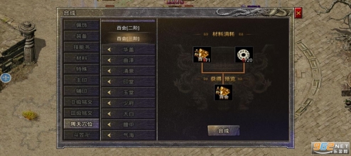 2. 分解穴位可获取山海玉,之后通过“合成-周天穴位”功能,合成所需的穴位进行佩戴。