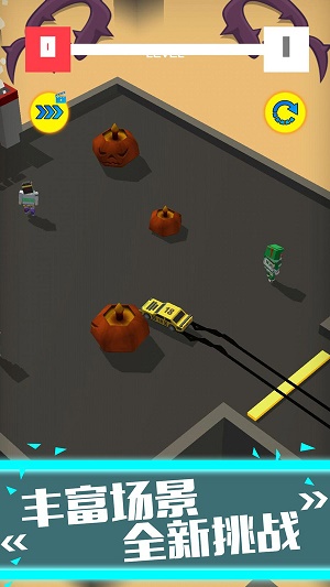 3.玩家在闯关途中会碰到形形色色的障碍物阻挡,必须灵活地避开它们,并且要提升驾驶速度,尽快抵达终点。