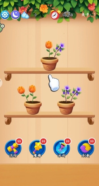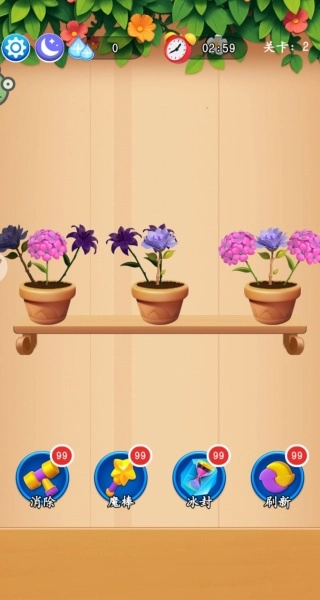 2. 当你成功消除特定数量的目标花朵后即可通过当前关卡,同时还能获得用于升级花园的金币奖励。