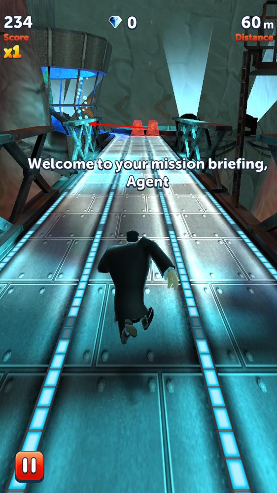 1进入游戏后,选择初始关卡,通过滑动屏幕操控特工完成跳跃、下滑等动作,避开前方的障碍物,开启跑酷之旅。