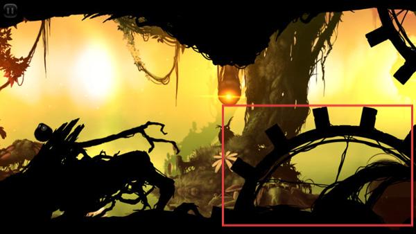 2画面里眨着眼睛的小黑球是森林探险中形影不离的伙伴,轻触屏幕后,整个场景便会以稳定的速度向后移动。