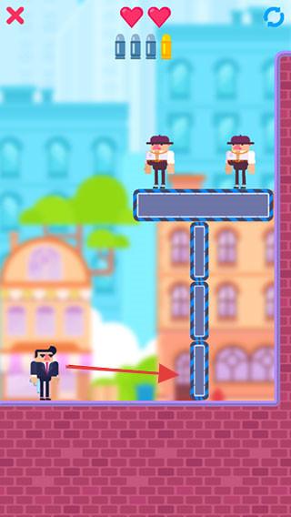 3、在射击场景中,需仔细观察敌人的位置与场景的结构特点,灵活调整射击角度,并借助物理机制的作用来击倒敌人,从而达成关卡设定的目标。