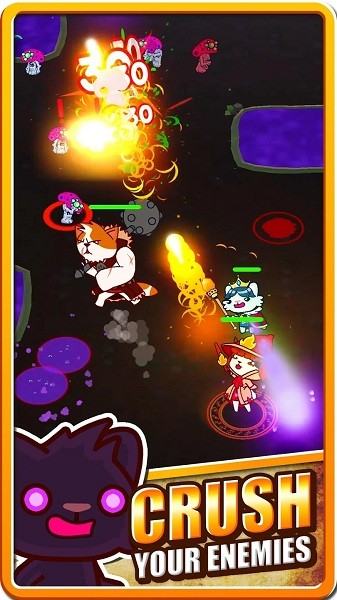 Catopia 邀您踏入一个遍布怪物与地牢的奇幻天地。你将率领一群身怀奇能的猫咪,每只猫都有着专属的角色定位与独特技能。借助超级简便的单手操控,您可以从弓箭和魔法声波中发射箭矢。只需停下脚步射击,再在团队跟随您的同时移动躲避即可!