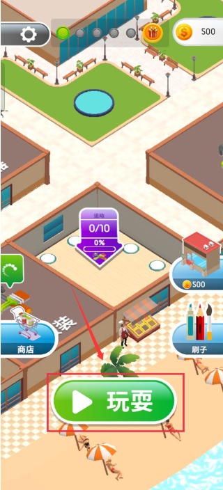 1、游戏初始阶段需要开设一家运动主题的店铺,随着后续解锁的物品不断增加,新的店铺也会逐步解锁,点击“玩耍”按钮即可开启游戏。
