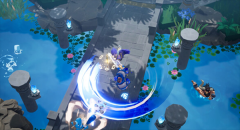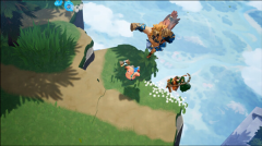 6值得一提的是,由于场景设定在悬浮于高空的岛屿之上,角色一旦坠落至岛屿边缘外便会直接淘汰。不过所有角色都具备在空中触发冲刺来完成二次跳跃的能力,即便不慎被卷入坠落趋势,也能借此回到岛屿表面。这使得岛屿周边区域时常上演类似乱斗游戏的经典场面——玩家们会利用具有击飞效果的技能,试图将对手逼出岛屿边界以达成淘汰。
