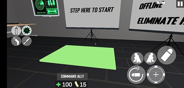 4、随后通过左侧操作控制角色移动,右侧则能执行蹲下、射击、瞄准等多种不同动作。