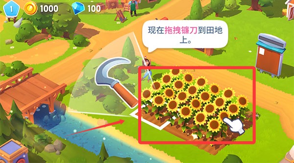 3操作镰刀状工具划过植物即可完成采收,之后还能将种子重新播撒种植。