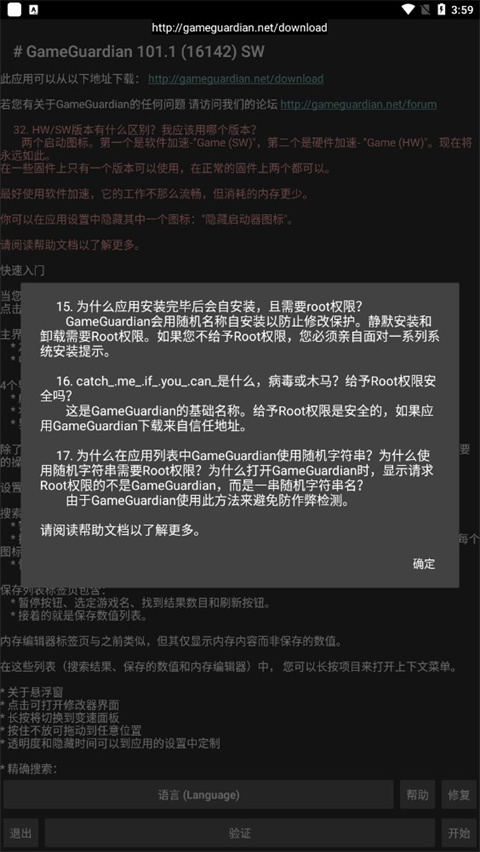 1、第一步打开GameGuardian应用,接着授予它超级用户访问权限,在弹出的权限请求窗口中选择允许就可以了;