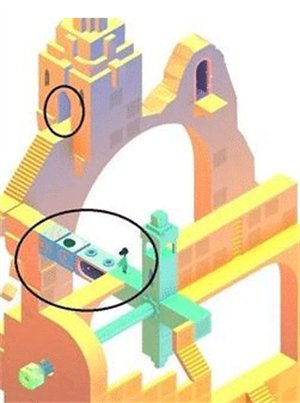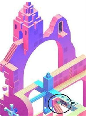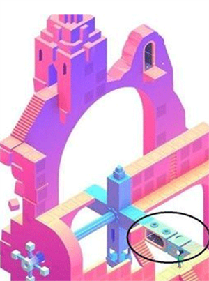 13、人物通过传送地道粉色按钮处,纪念碑谷2第十章就通关了。