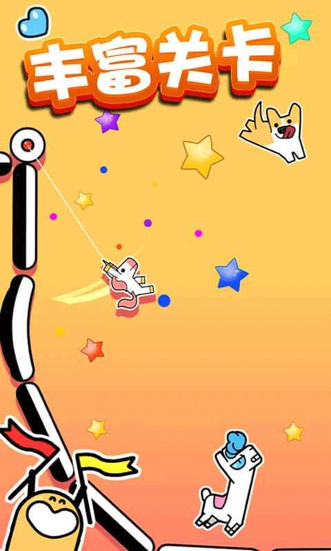 2、通过手指点击的方式来控制小人的飞行,需要掌握好脱离绳子的时机,才不会掉下去;