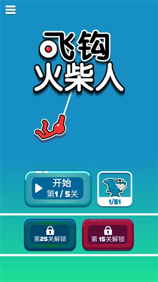 1、打开飞钩火柴人游戏,点击「开始」按钮进入关卡。