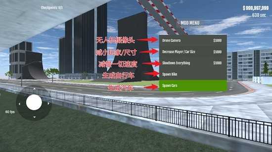 4、进入主界面后,屏幕角落会出现MOD MENU功能图标,点击该图标就能开启菜单,进而自由使用、解锁所有车辆等自定义功能。