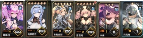 5、对于后期的爬塔,强烈推荐摩根勒菲、亚尔薇特、未来、娜斯佳、多萝西、弗兰卡、莹草、芙露露、蒂娜和彩华。