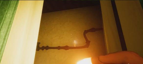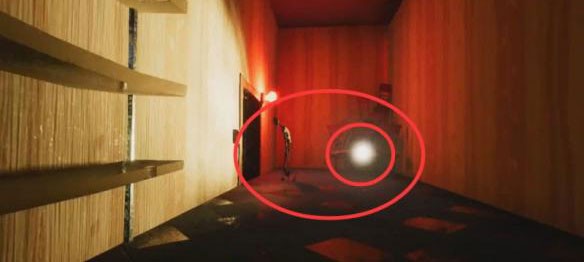 沿着当前方向一直前行,在道路的终点处,靠近一个人形玩偶的位置能找到手电筒。接着前往尽头的房间,房内有一扇铁栅栏门无法开启,旁边有台发动机,但通往发动机的那扇门正存在漏电情况。