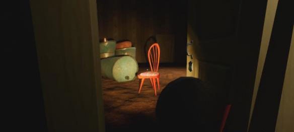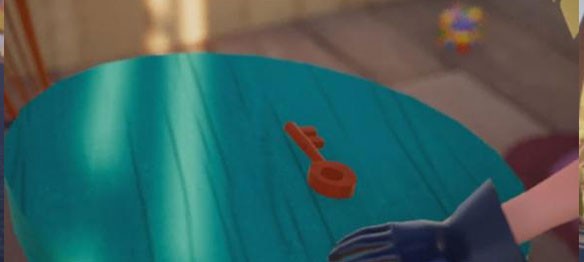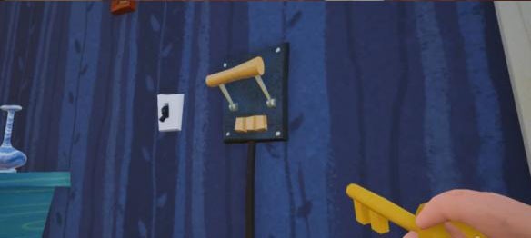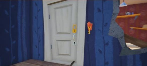 取走蓝色桌案上的钥匙,前往一楼起居室,开启蓝色沙发近旁的黄色门扉,进入地下空间。