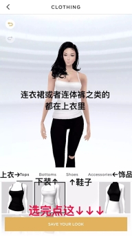 4、选定人模后选择初始形象,可随意挑选,你此刻所选的物品都会永久保存在衣柜中,选好后点击黄色按钮进入下一页。