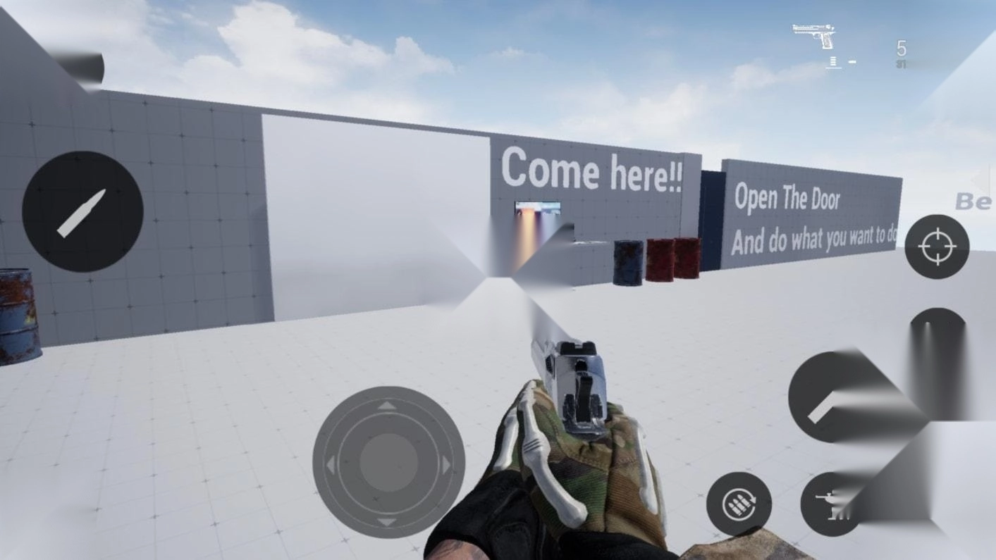 6、这样玩家在靠近墙体的时候按下按键就可以举枪了。