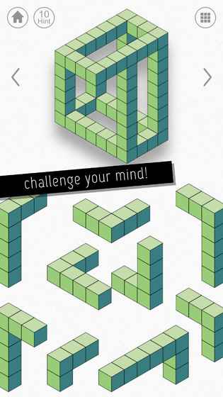 这款名为kubic的轻度益智游戏,灵感来源于M.C.埃舍尔独特的简约艺术风格,内含六十多个充满埃舍尔式创意的谜题。