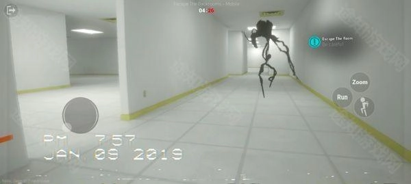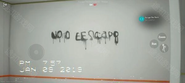 2、游戏内如图,屏幕左边控制移动、右边则为奔跑、跳跃、放大观看等键位,玩家需在这个密室中找寻线索;