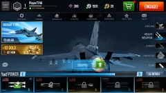 1、启动Modern Warplanes游戏,进入游戏主界面,在这个界面中我们能够查看、升级并为自己的战机配备装备。