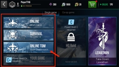 3、进入游戏的模式选择界面后,可看到包含【ONLINE】单人、【SURVIVAL】生存以及【ONLINE TDM】团队模式在内的选项,以下将以团队模式为例进行说明。