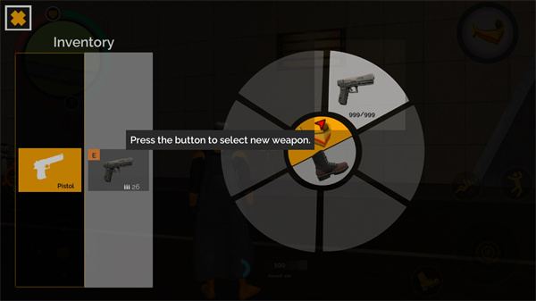 2画面左侧区域用于控制方向,右侧则分布着多个功能按键,涵盖了攻击、射击与跳跃等操作;若要切换武器,可点击界面左上角的对应区域。