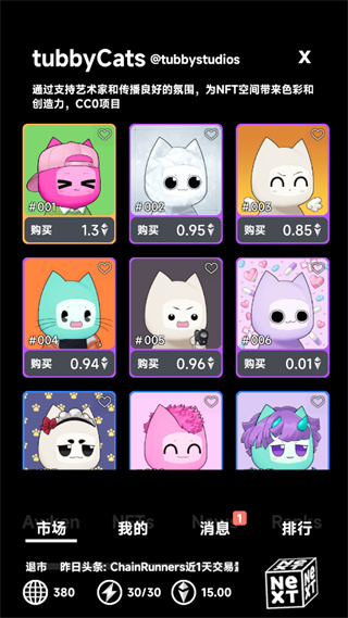 4、点击“市场”,可查看现有的藏品;
