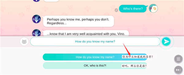 1、进入剧情后,对方先发送“Hello你好”,我们回应“你是谁?”