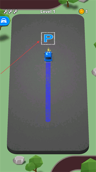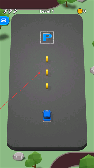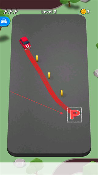 1玩家需手动绘制行驶路线,引导车辆在移动过程中获取金币,并确保其准确停靠到指定的P字停车区域。