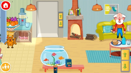 4、可以给小鱼喂食物,也可以给壁炉加柴火。