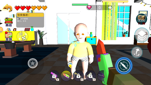 2、在场景里搜寻爱捣蛋的黄衣婴儿,借助选定的武器巧妙应对,避免他们搞破坏。