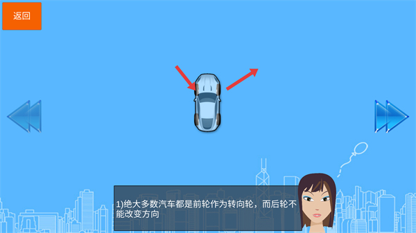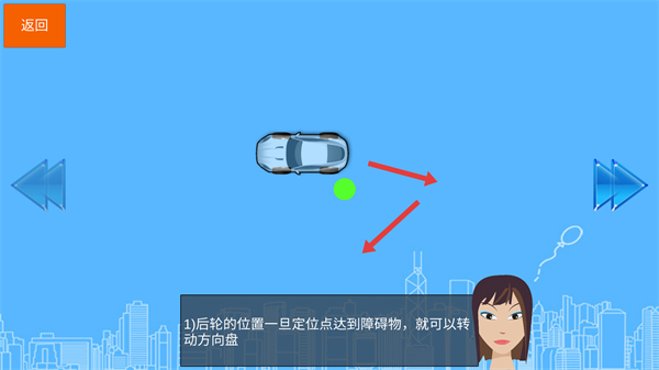 1、掌握汽车后轮定位的相关知识,当后轮位置的定位点遇到障碍物时,便可通过转动方向盘来调整行驶方向。